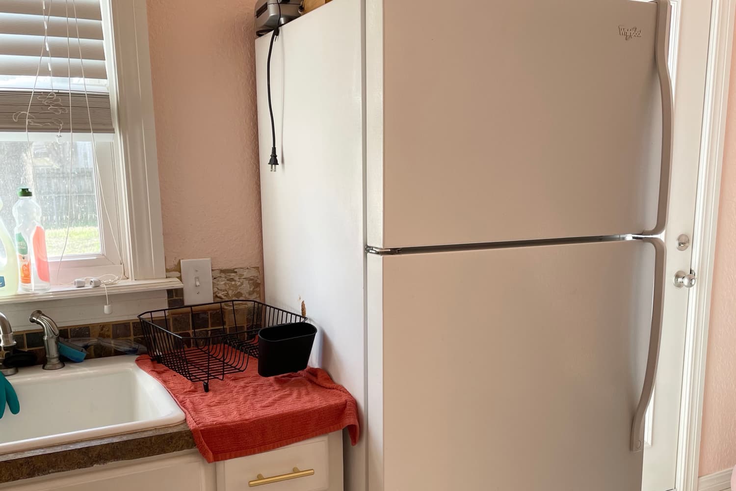 So somewhat than pay cash for one thing she didn’t love, she says, she labored with what she had. “I made a decision to provide our current fridge a makeover to make it extra interesting as a result of there’s no means we will afford a Smeg,” she says.