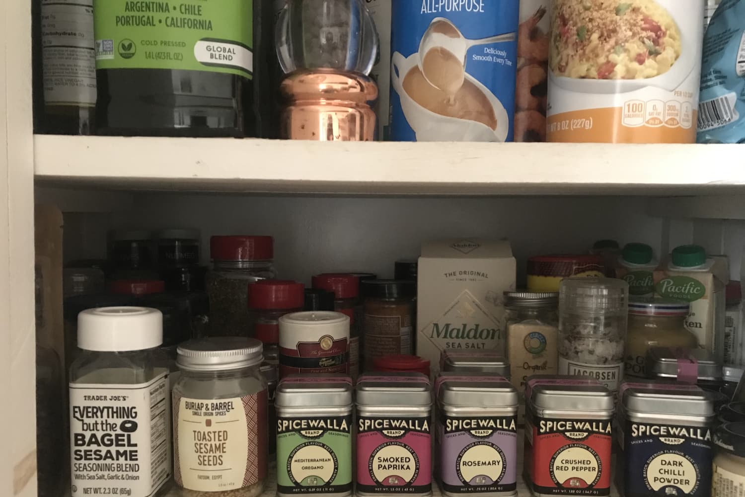 I put two on my spice shelf, which happens to be the darkest and also where I end up buying the most duplicates. And just look at the difference they make! (I spaced the other three out among the remaining shelves.)